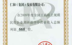 2009年度全國工商聯上規模民營企業調研排序中營業收入總額列668位