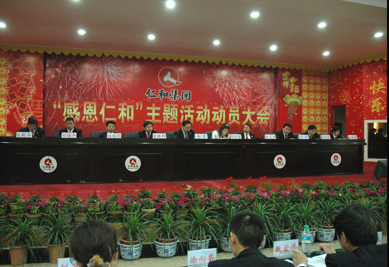 常懷感恩心,報答仁和情。2007年5月5日下午,“感恩仁和”主題活動大會在仁和集團總部三樓綜合大廳隆重舉行,集團公司“決策”、“經營”兩套班子部分成員出席了大會并在主席臺就座。大會由總經理辦公室主任肖國華主持。來自集團公司各總部的員工代表300余人參加了大會。